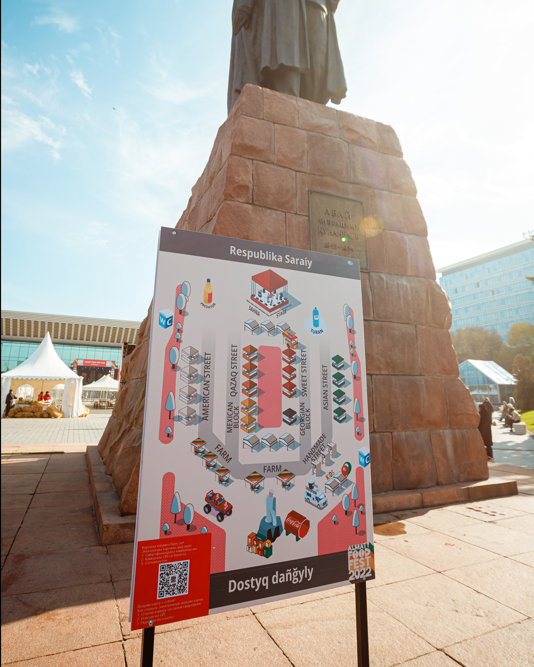 Мы разработали айдентику для гастрономического фестиваля в Алматы, включая логотип, цветовую палитру, типографику, кей-вижуалы и паттерны. Также мы создали веб-сайт фестиваля, промо-ролики для медиа-бордов, дизайн для социальных сетей, иллюстрацию карты мероприятия и мерчандайзинг.
